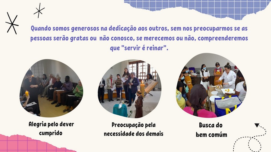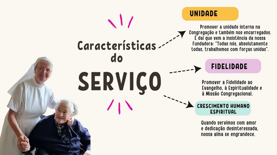 Promover a unidade interna na Congregação e também nos encarregados. É daí que vem a insistência do nossa Fundadora: “Todas nós, absolutamente todas nós, trabalhemos com forças unidas”.