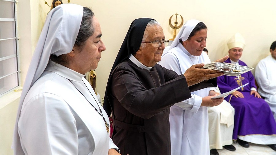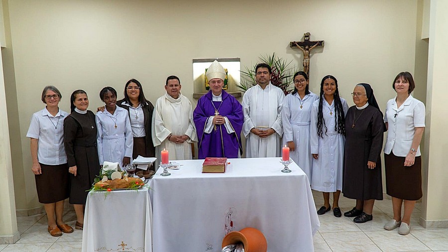 El 15 de marzo del 2026, cuarto domingo de cuaresma, la Congregación de las Hermanas Franciscanas Misioneras de María Auxiliadora estuvo en sintonía y conectada, acompañando con mucha gratitud y gozo, la celebración de Ingreso al Noviciado de las jóvenes Isabela Paulino da Silva y Marianne Ndulu. Isabela es brasileña, natural de la ciudad de Campina Grande, estado de Paraíba, Brasil. Marianne Ndulu es congoleña, natural de Kikwit, Provincia de Kwilu, Republica Democrática del Congo/África. La Eucaristia fue celebrada en la fraternidad del Noviciado, Medellín, Colômbia por Monseñor Juan Fernando Franco Sánchez, Obispo de Caldas, Antioquia.