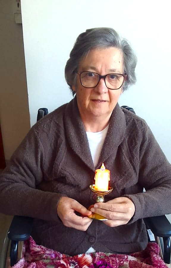 “Yo, la Hermana Matilde Gurzyshi, vivo en la Fraternidad Betania, en Paso Fundo, Brasil y necesito cuidados especiales debido a mi estado de salud. He sufrido secuelas de un cáncer que afectó mi columna vertebral y médula espinal. Estoy paralizada de cintura para abajo y uso silla de ruedas.